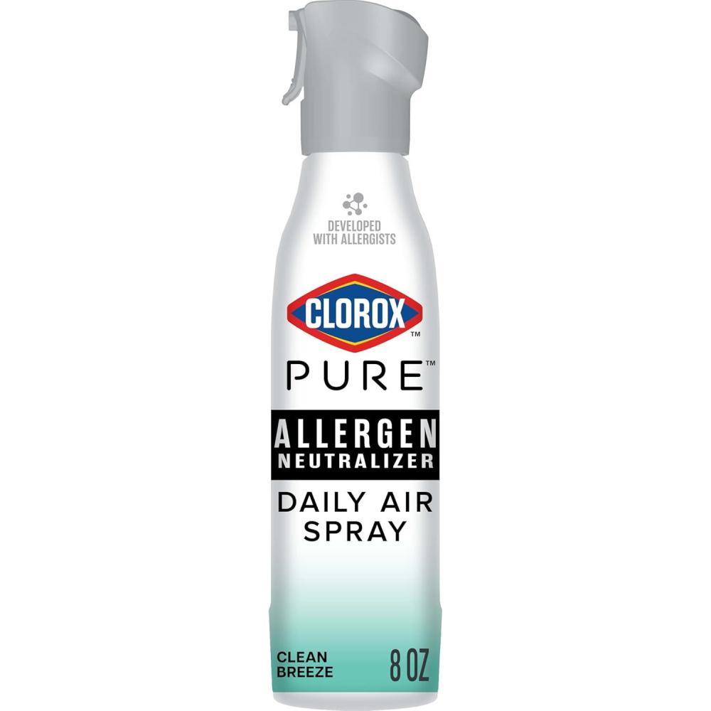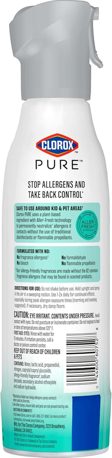 NEW ALLERGEN NEUTRALIZER SPRAY: Clorox PURE Allergen Neutralizer Daily Air Spray is the only daily air spray to neutralize non living pet dander and pollen